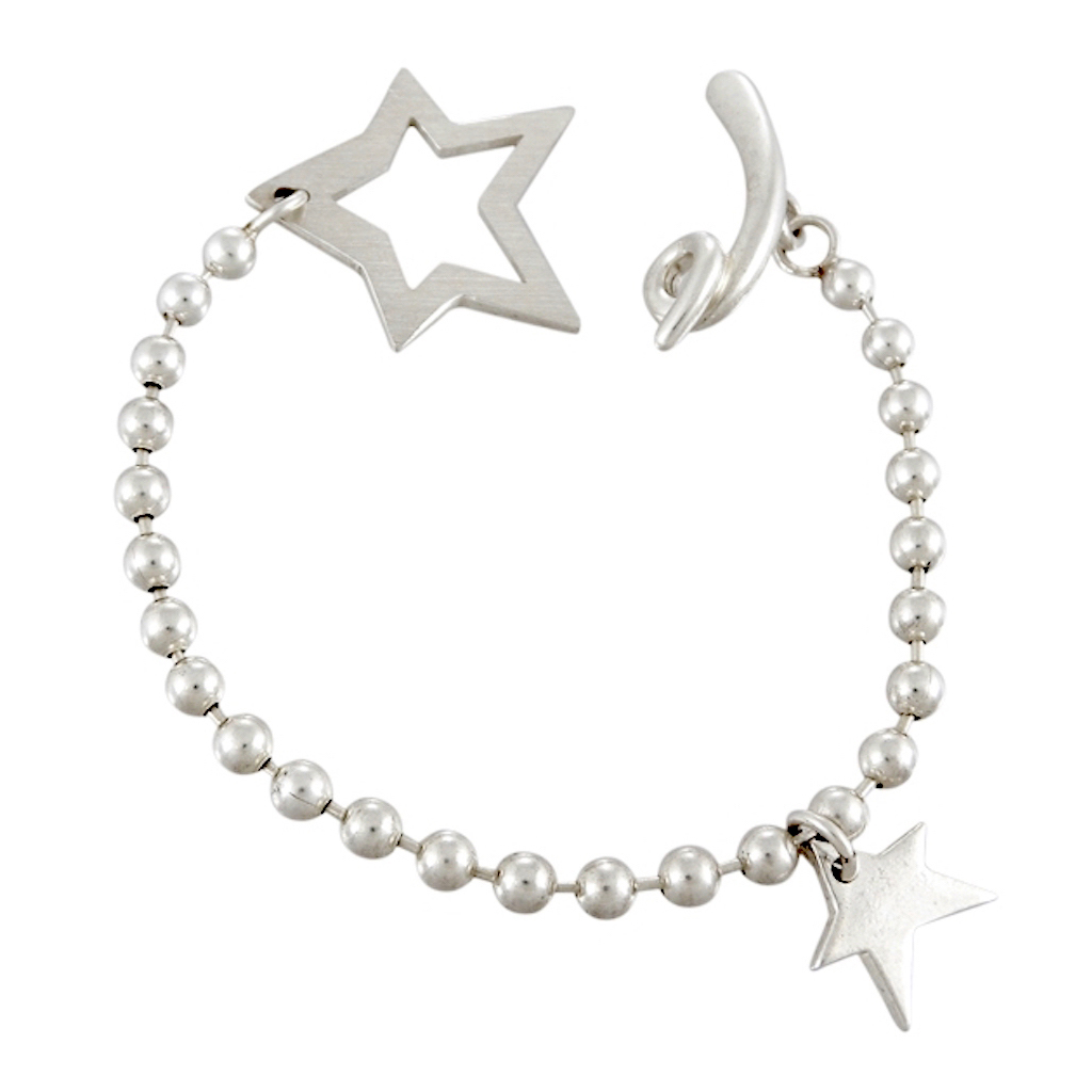 Rhodium plating star T-lock fancy ball silver bracelet with star-dust finishing
