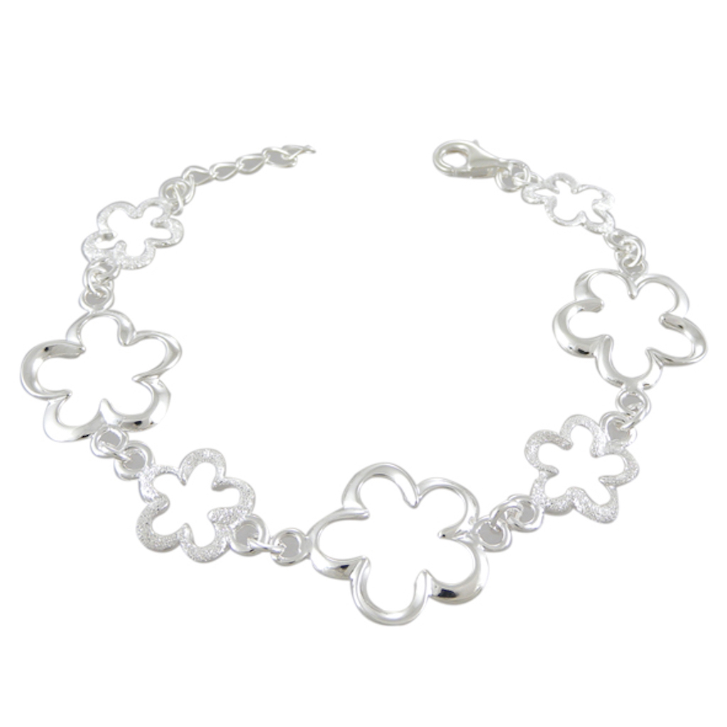 Rhodium plating fancy flowers silver bracelet with star-dust finishing