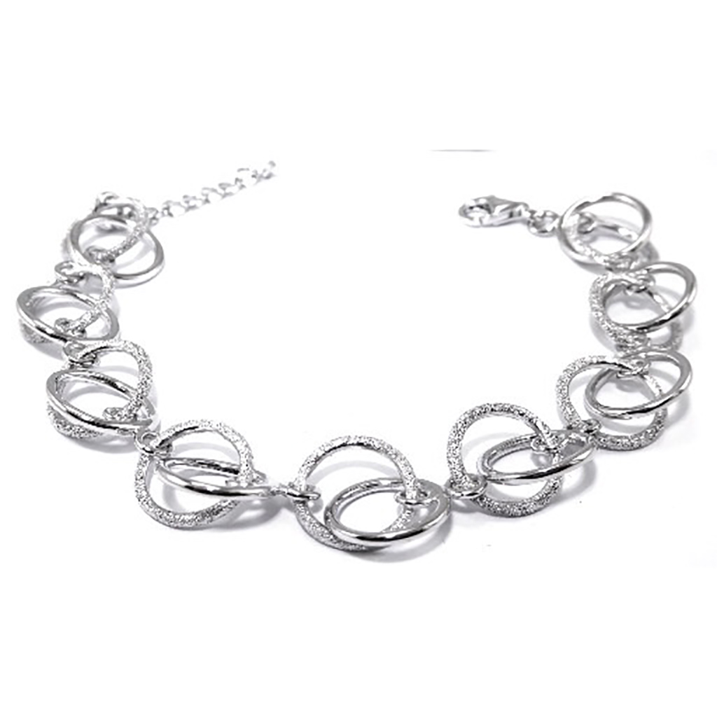 Rhodium plating fancy silver cross circles bracelet with star-dust finishing