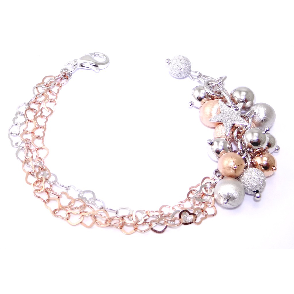 Rhodium plating fancy silver bracelet with star-dust and dia-sat finishing