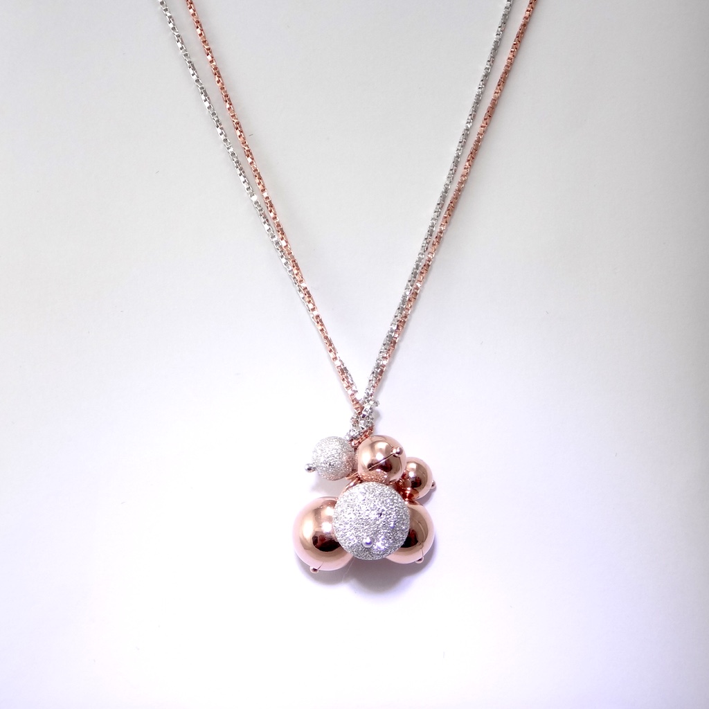 Rhodium and rose gold plating fancy beads silver necklace with star-dust finishing