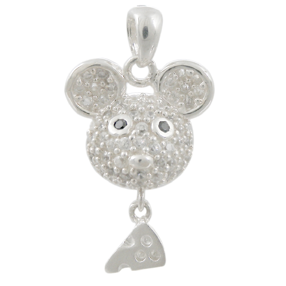 Rhodium plating CZs are set in fancy mick head hanged cheesse silver pendant